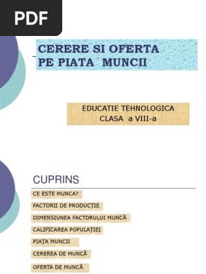 Cerere Si Oferta Pe Piata Muncii Educatie Tehnologica Clasa A Viii A