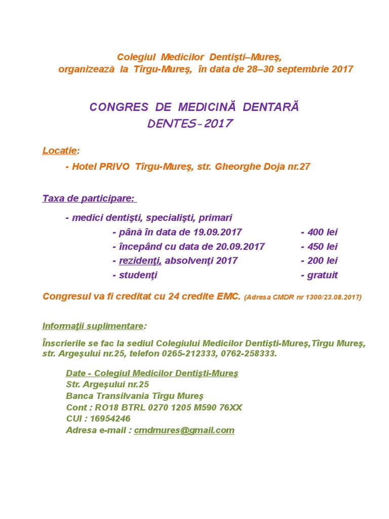 Zsm 24 26 Martie 2017 Targu Mureș Colegiul Medicilor Stomatologi Timis