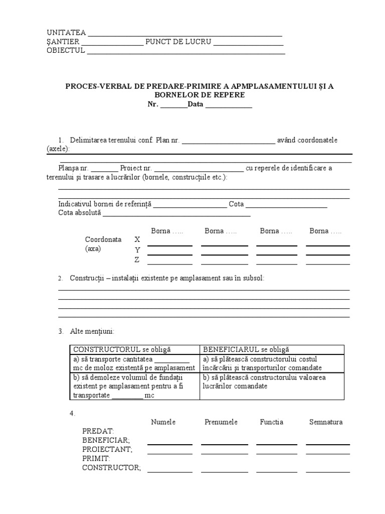 Fillable Online Proces Verbal De Predare Primire A Amplasamentului Si A Bornelor De Repere Fax Email Print Pdffiller