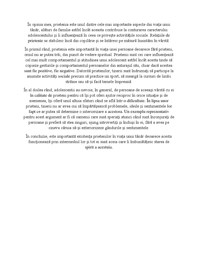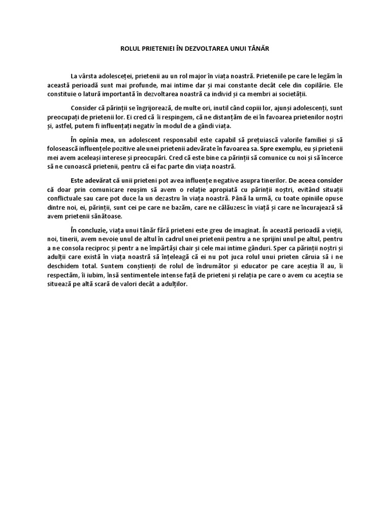 Eseu Rolul Prieteniei In Dezvoltarea Unui Tanar