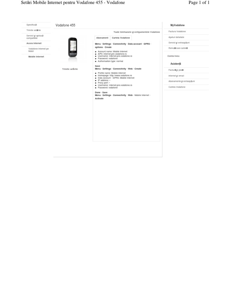Setări Internet Vodafone Pentru Abonamente și Prepay Configurare Apn